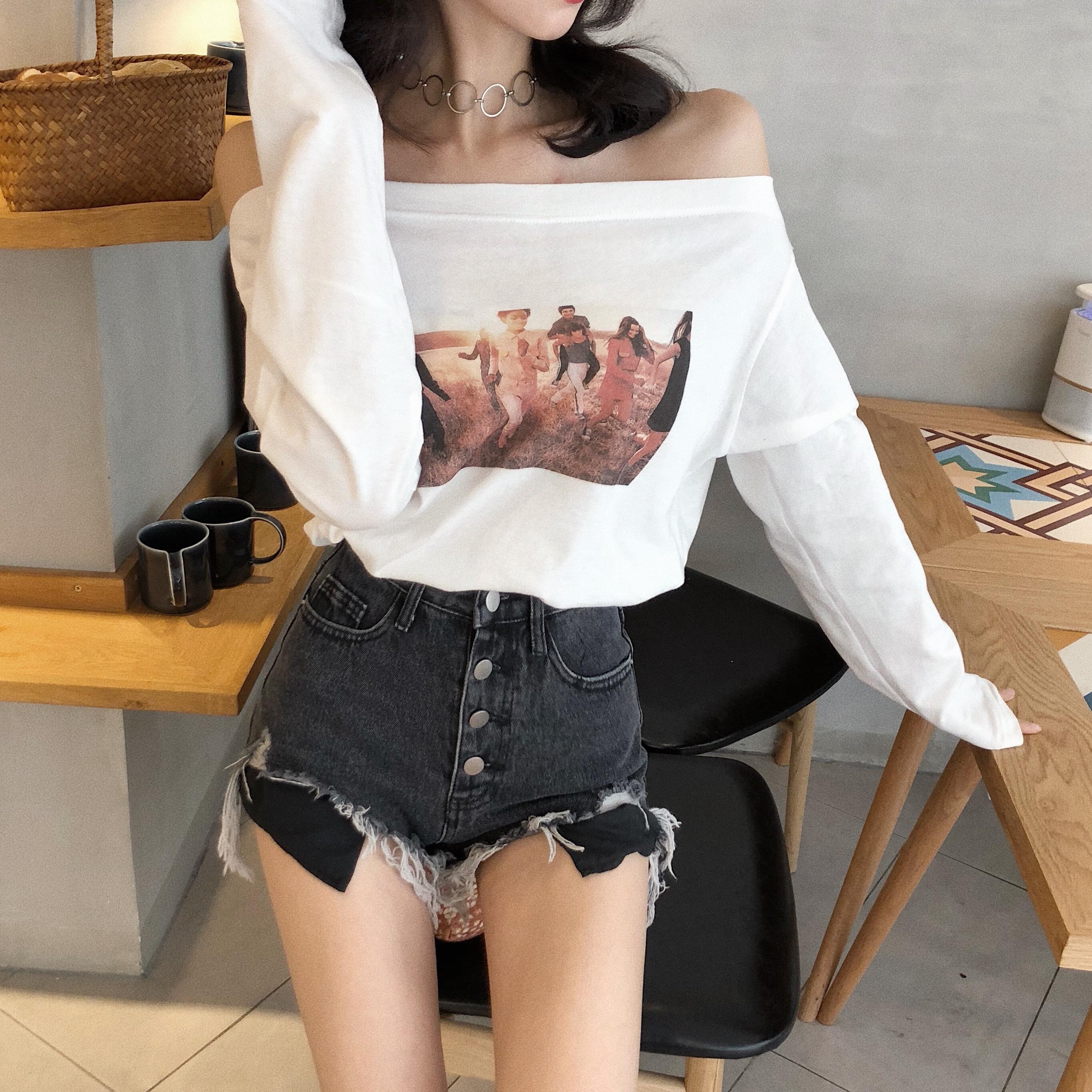 / 秋季新款百搭小清新學生復古chic韓版上衣女氣質印花打底長袖T恤