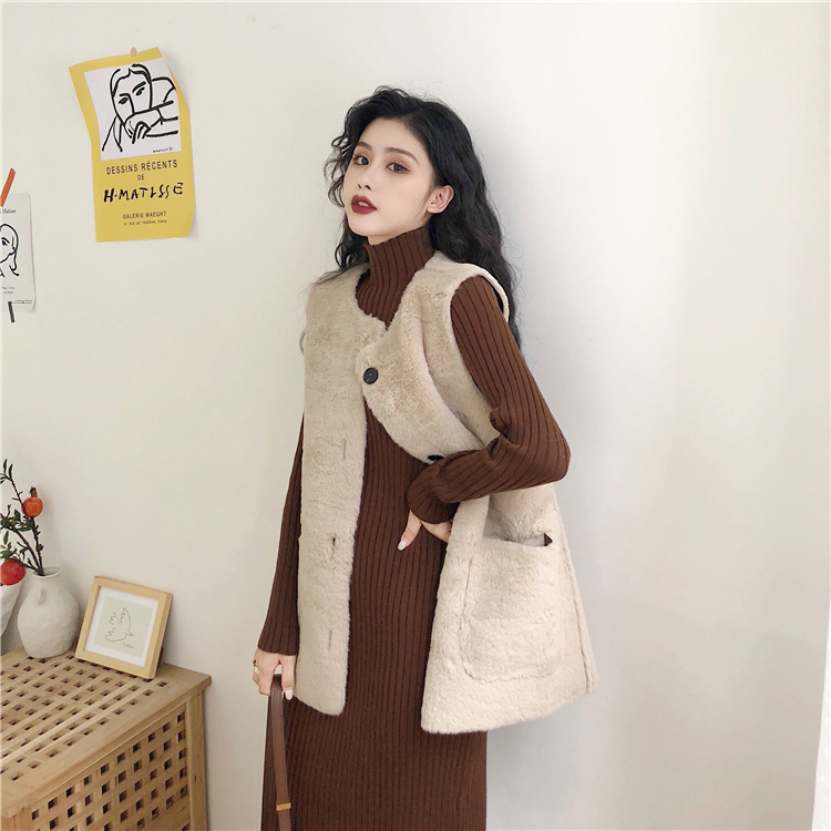 搭了絨毛馬甲有質感,穿上你就是大美人一枚〜