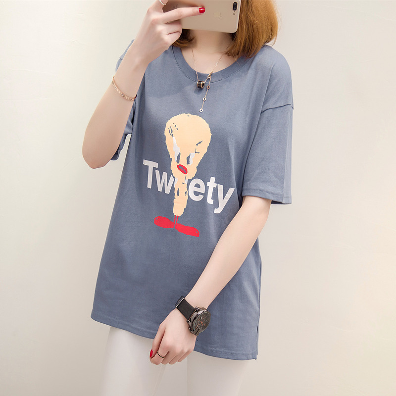 / 女裝春裝新款潮女上衣短袖寬松打底卡通t恤女韓版圓領小衫