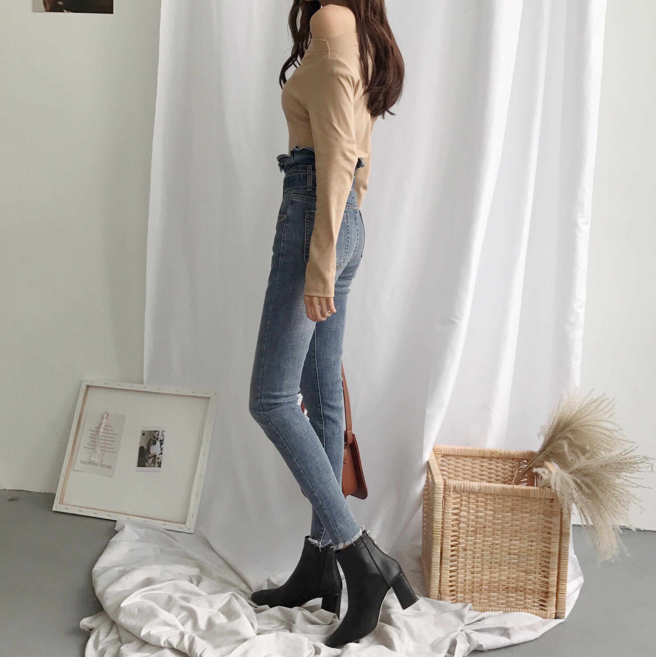 / 秋季荷葉邊彈力高腰氣質百搭牛仔褲女緊身小腳顯瘦韓版學生鉛筆褲