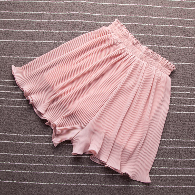 雪紡闊腿短褲女夏新款韓版高腰寬松學生百搭休閑褲子a字裙褲