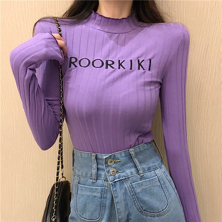 秋冬女裝2018新款字母薄毛衣修身長袖短款針織打底衫時尚T恤上衣