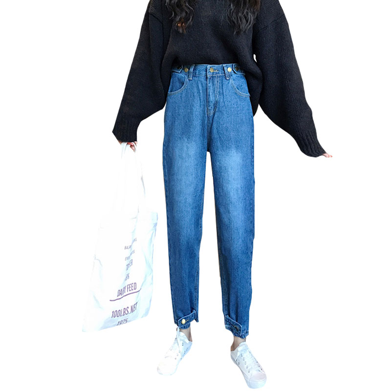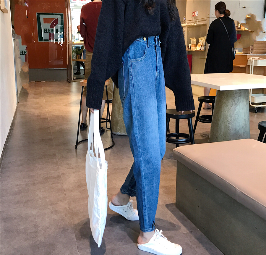/ 秋冬韓版寬松百搭牛仔褲高腰顯瘦個性褲口直筒褲九分褲學生褲子女