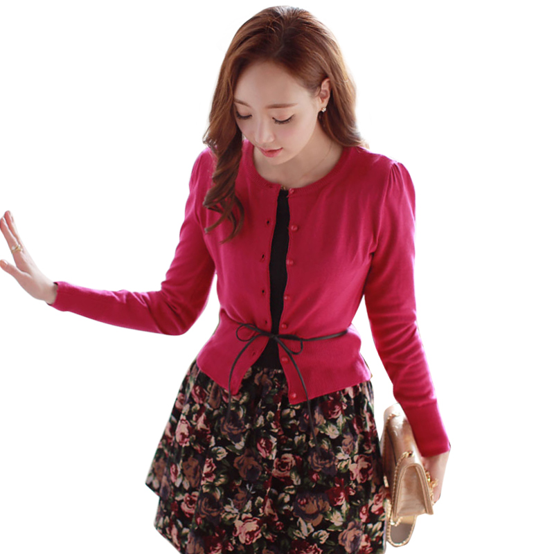 圓領短款針織衫女開衫外套韓版修身百搭針織衫毛衣小開衫空調衫女