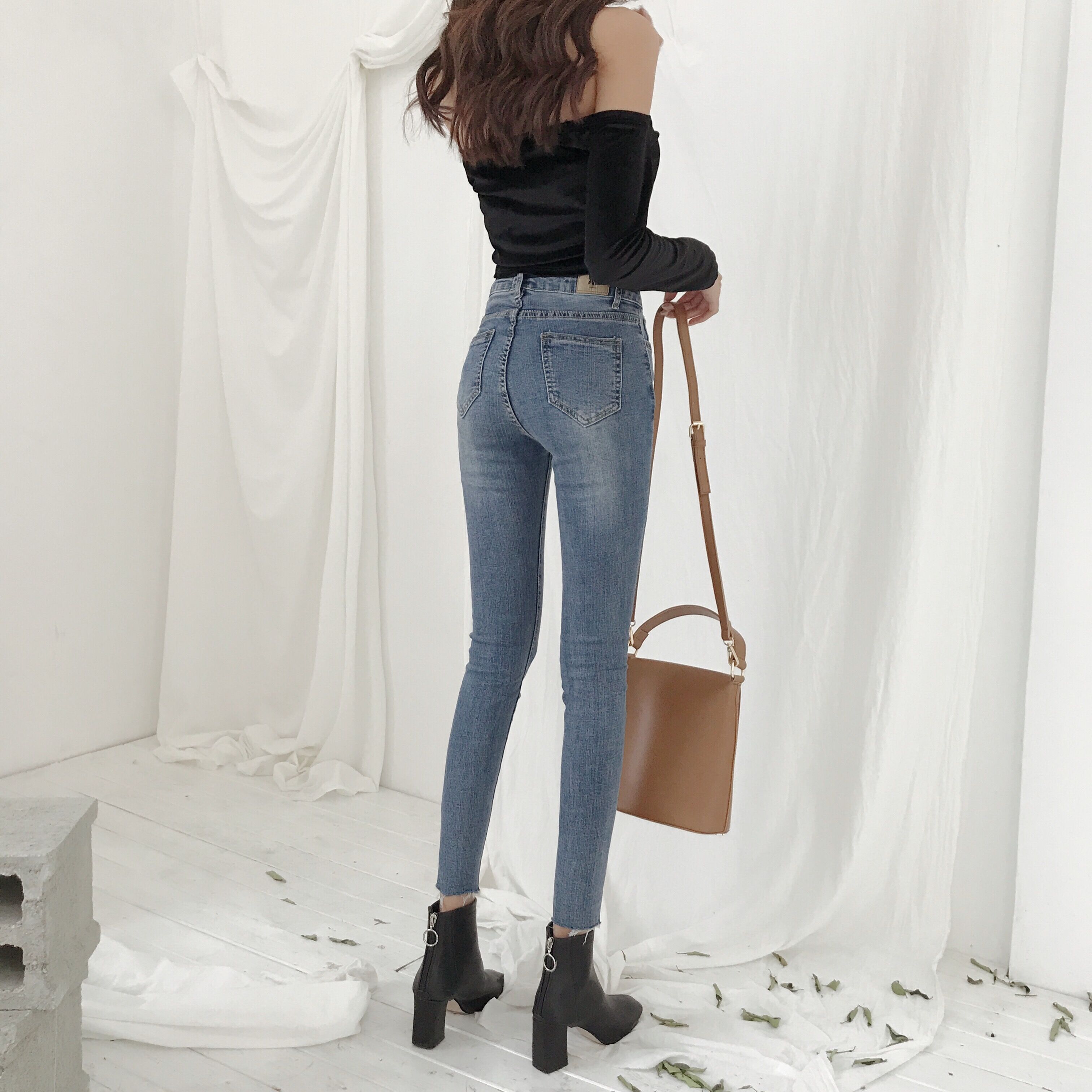 2018新款韓版不規則牛仔褲高腰時尚九分學生褲子百搭顯瘦鉛筆褲女