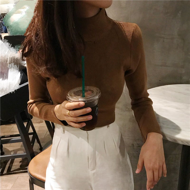 / 韓版chic慵懶風毛衣女2018新款秋半高領修身套頭打底衫針織衫上衣