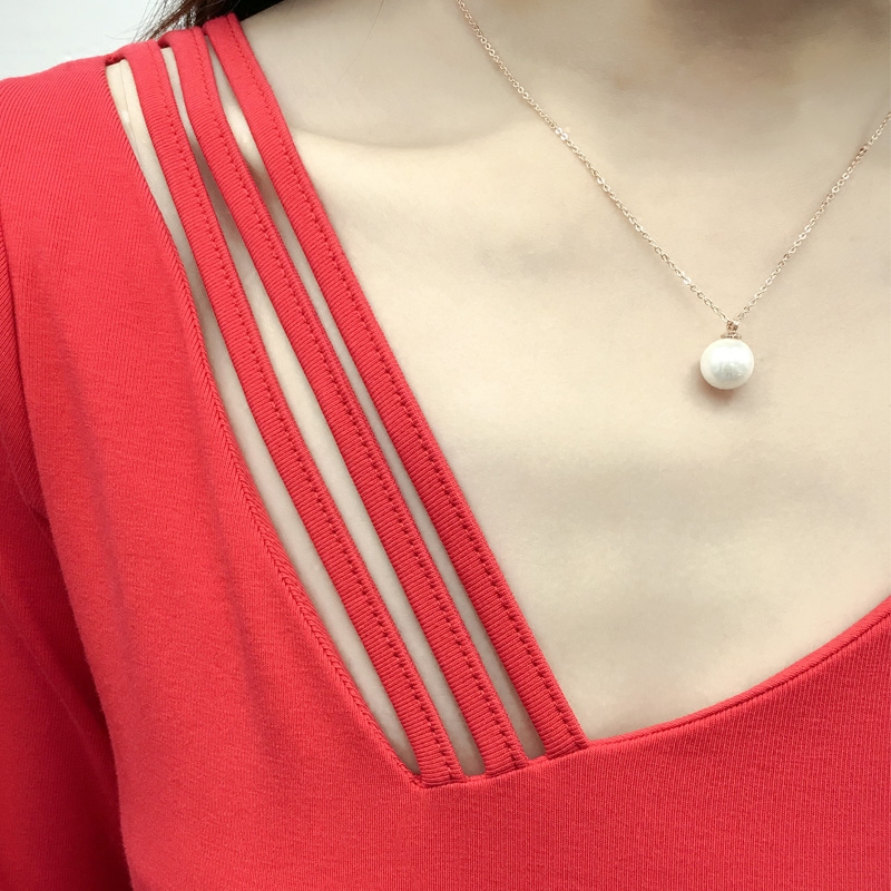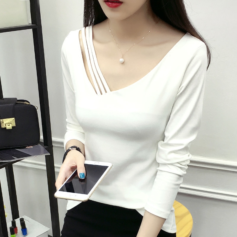 / 長袖女T恤純色棉質V領修身百搭體恤衫秋大碼顯瘦打底衫t桖
