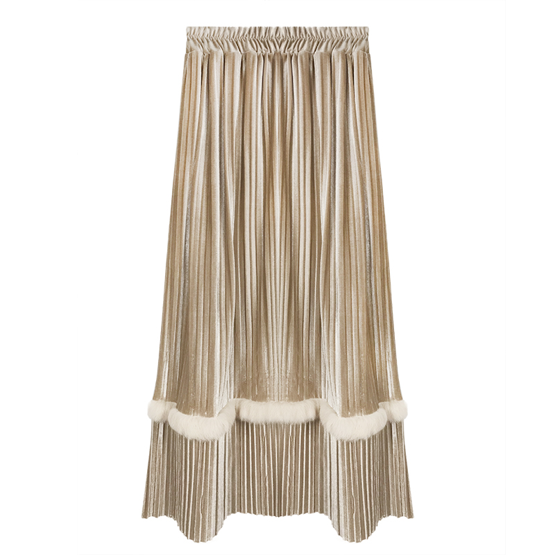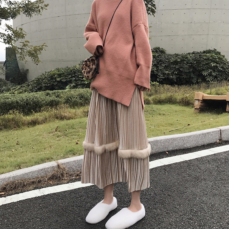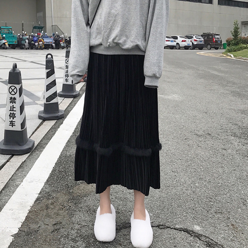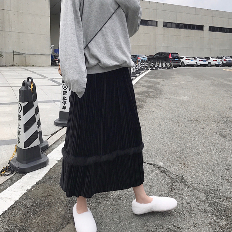 / 秋冬女裝2018新款復古風高腰顯瘦絲絨半身裙學生黑色A字百褶裙子