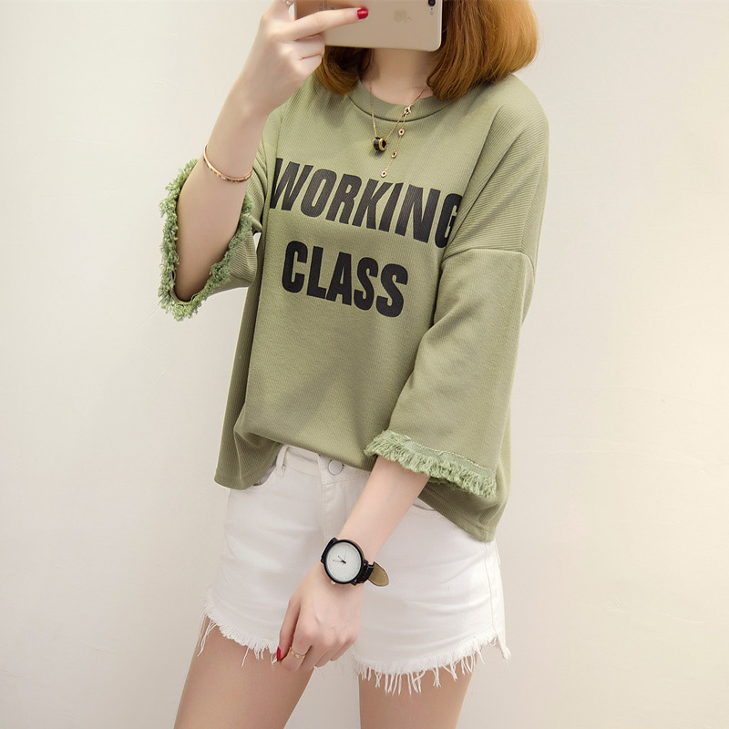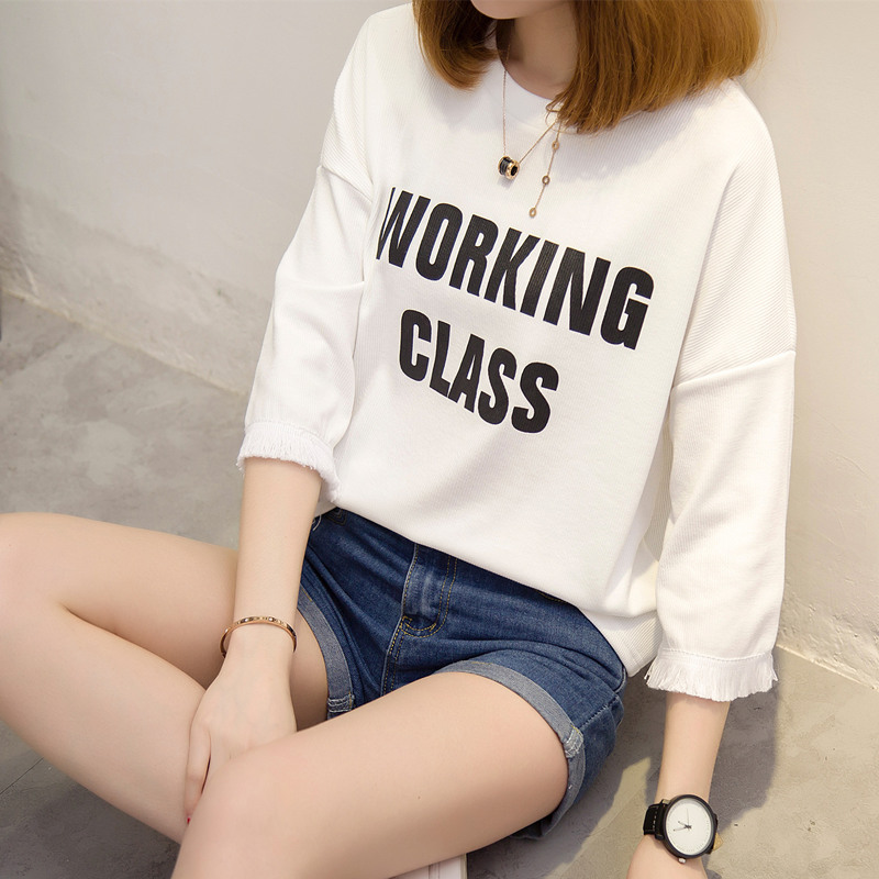短袖t恤女韓版寬松百搭上衣女夏裝新款潮字母短袖白色t恤潮