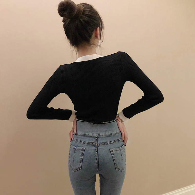 chic百搭顯瘦打底薄毛衣女秋冬裝2018新款時尚復古V領套頭針織衫