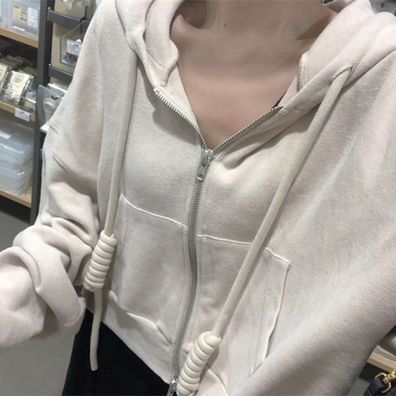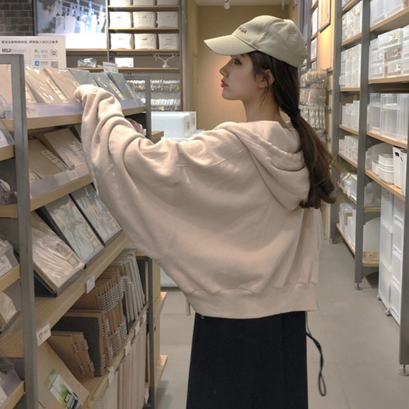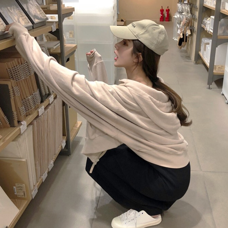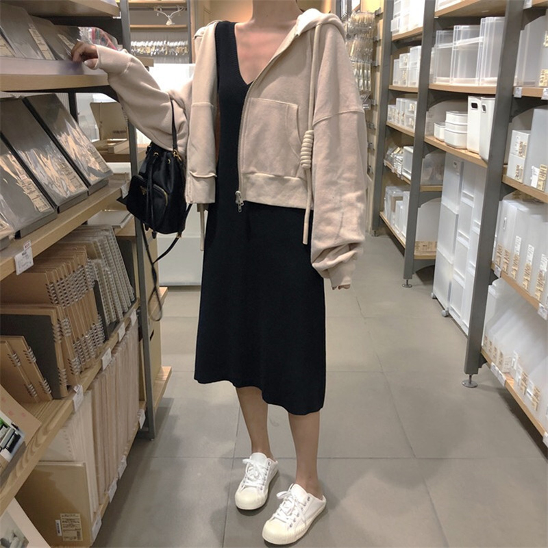 杏色衛衣外套|黑色背心裙