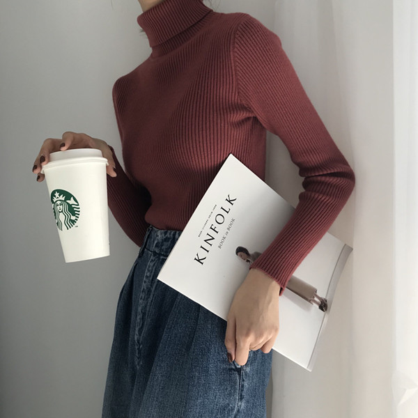 韓版chic早秋針織衫網紅毛衣女慵懶風高領百搭修身加厚針織打底衫