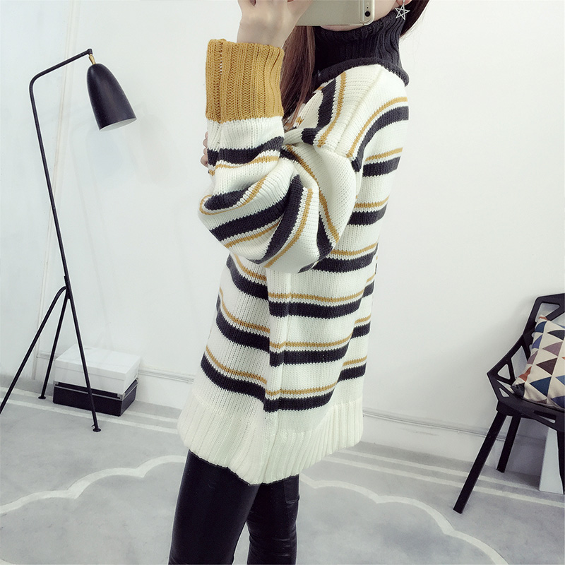 / 套頭毛衣女秋冬韓版寬松中長款條紋針織衫外套女裝秋裝新款潮