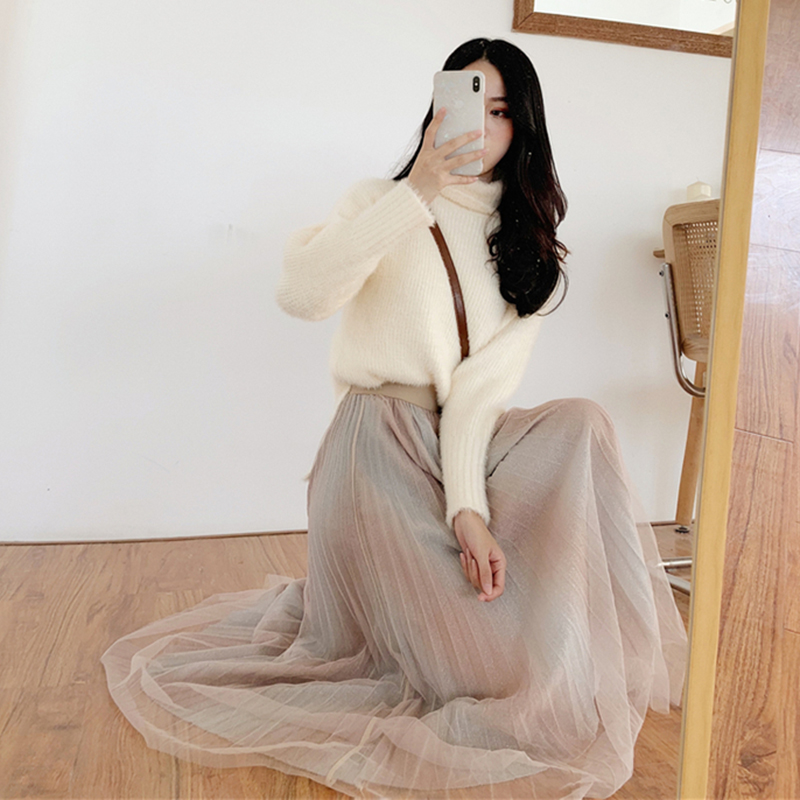 / 毛衣配裙子兩件套女裝秋冬新款寬松高領套頭針織衫高腰A字百褶裙