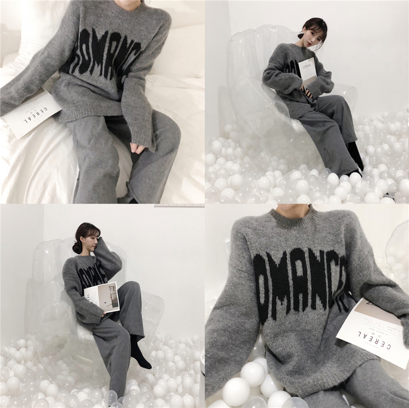 / 韓版網紅同款2018新款秋冬寬松慵懶風套頭毛衣女中長款字母針織衫