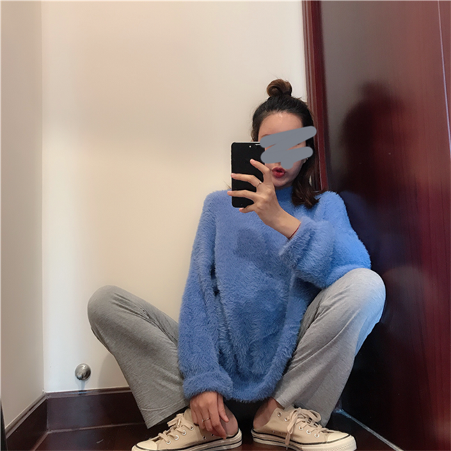 早秋衛衣2018新款女長袖韓版寬松慵懶風氣質水貂絨針織毛衣衛衣女