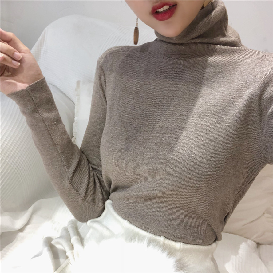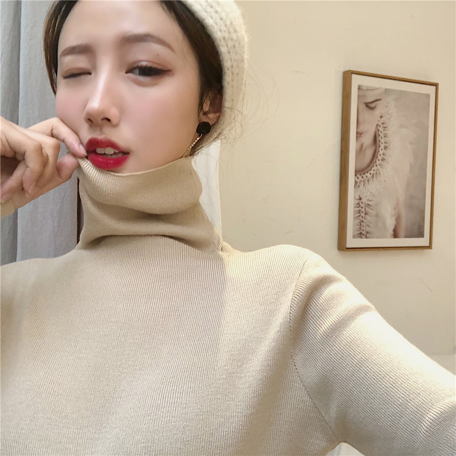 2018秋冬新款百搭款純色高領顯瘦彈力毛針織衫韓版打底衫內搭毛衣