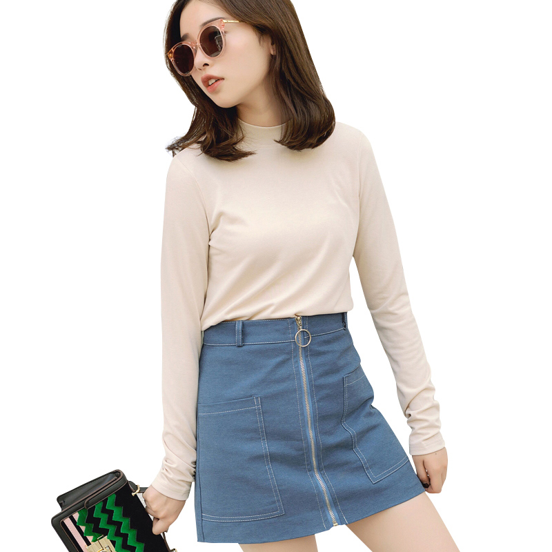 / 春秋季女裝新款長袖純色半高領T恤套頭短款韓版修身打底衫潮