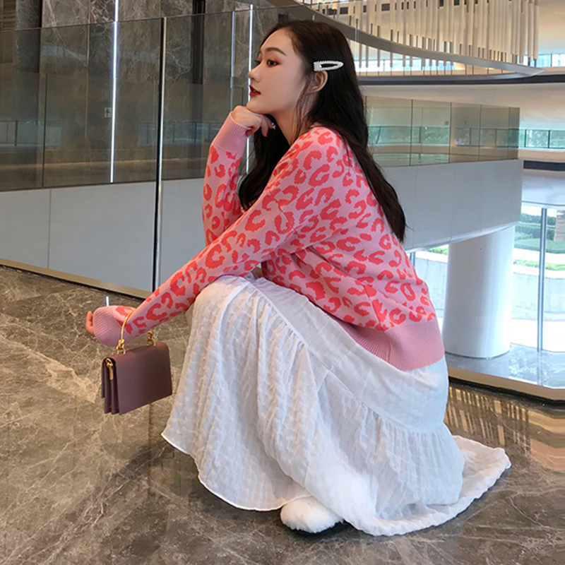 慵懶風套頭毛衣外套女秋冬裝2018新款韓版時尚寬松豹長袖針織衫潮