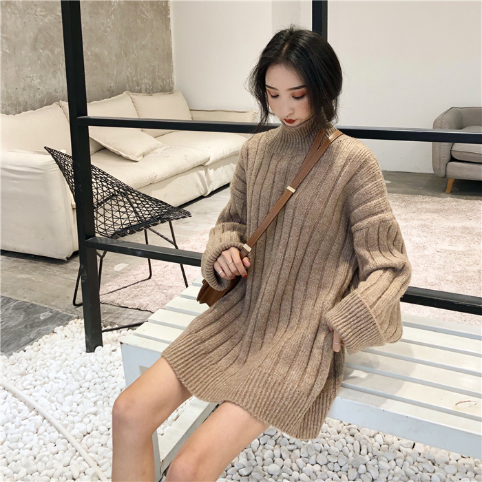 秋冬季女裝新款韓版中長款百搭chic寬松慵懶半高領質感坑條毛衣潮