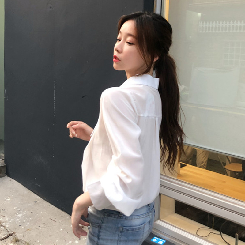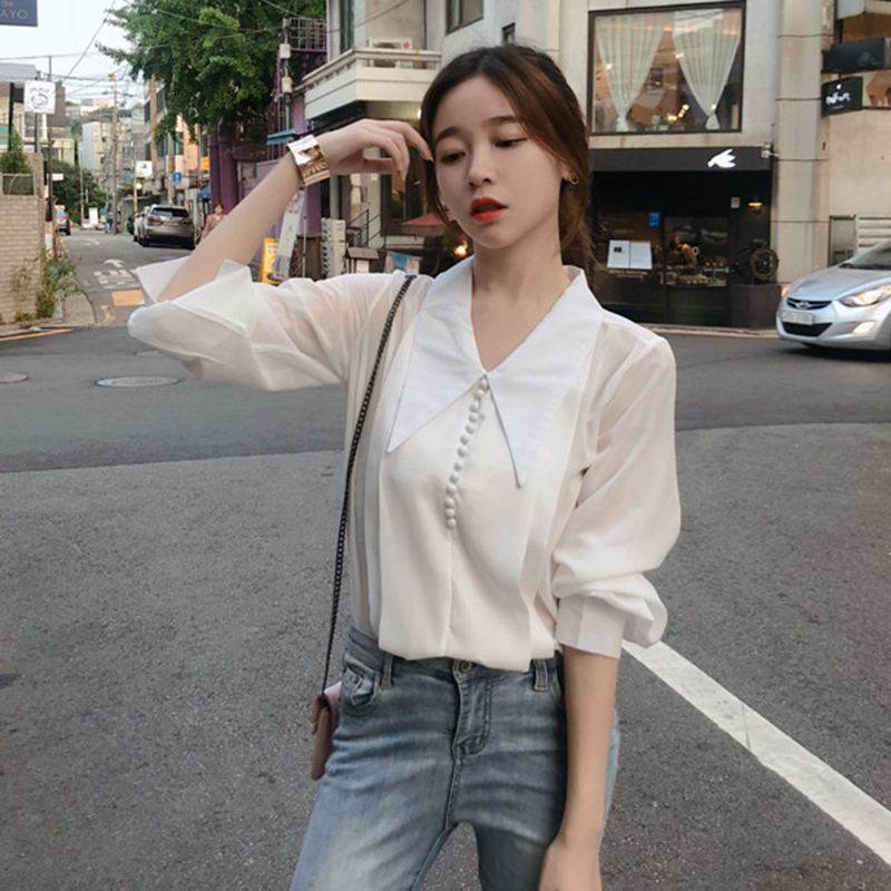 襯衣女2018新款秋裝韓版休閑寬松長袖V領上衣時尚氣質簡約白襯衫