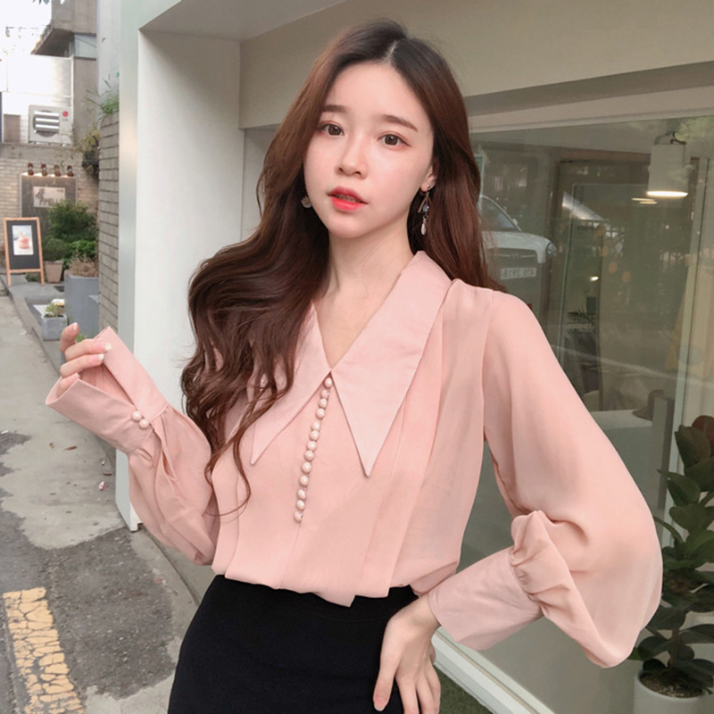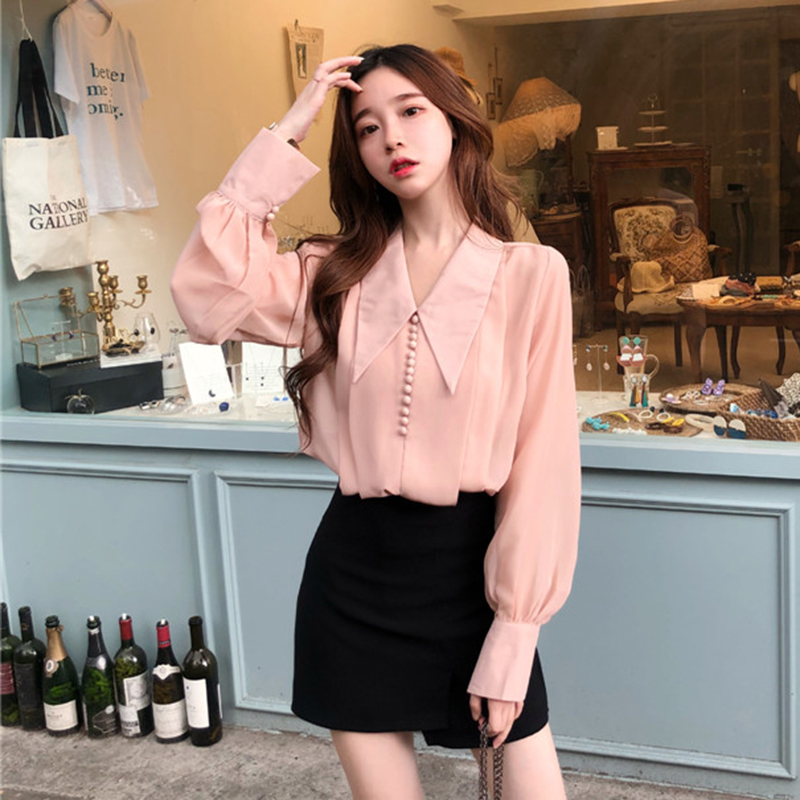 / 襯衣女2018新款秋裝韓版休閑寬松長袖V領上衣時尚氣質簡約白襯衫