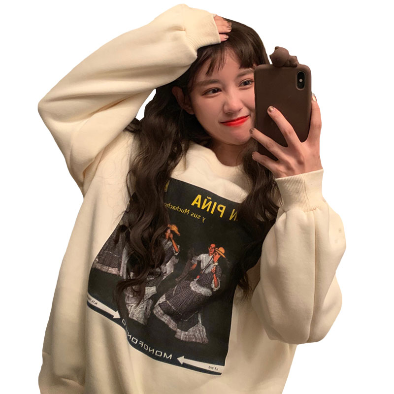 / 2018新款秋冬韓版寬松原宿風卡通字母貼圖加絨加厚衛衣上衣外套女