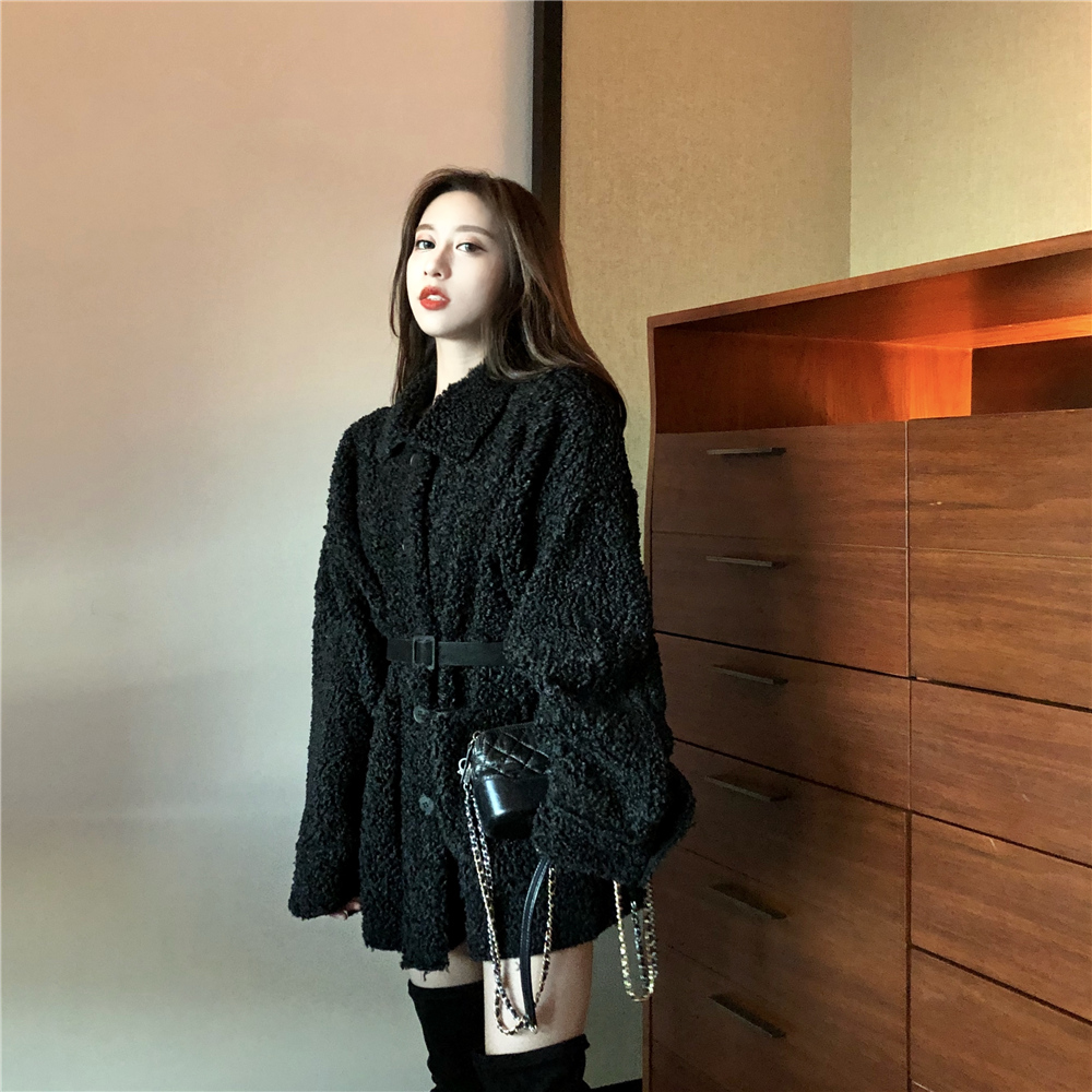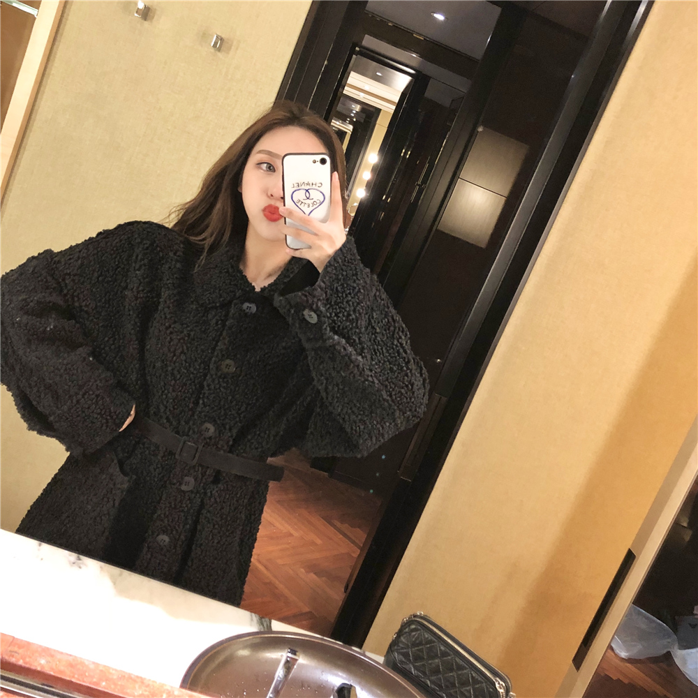 外套女春秋2018新款時尚chic簡約寬松顯瘦中長款呢子外套女配腰帶