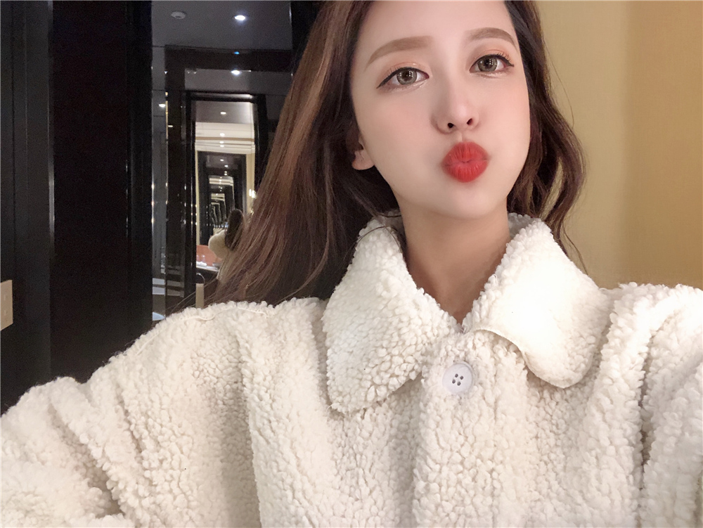 韓版時尚港風外套冬季女2018新款氣質羊羔毛包邊加厚寬松夾棉上衣
