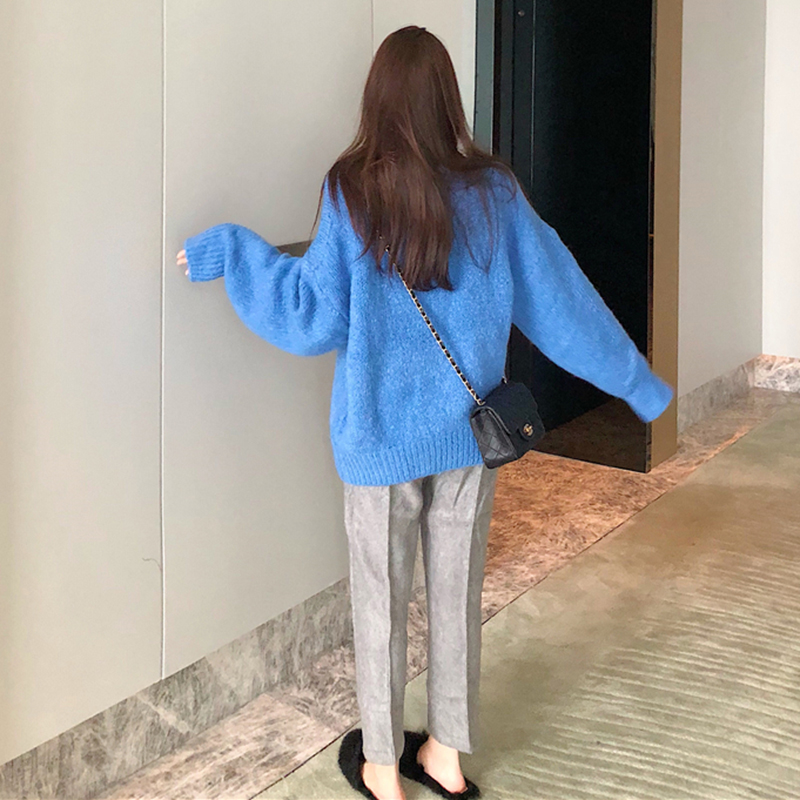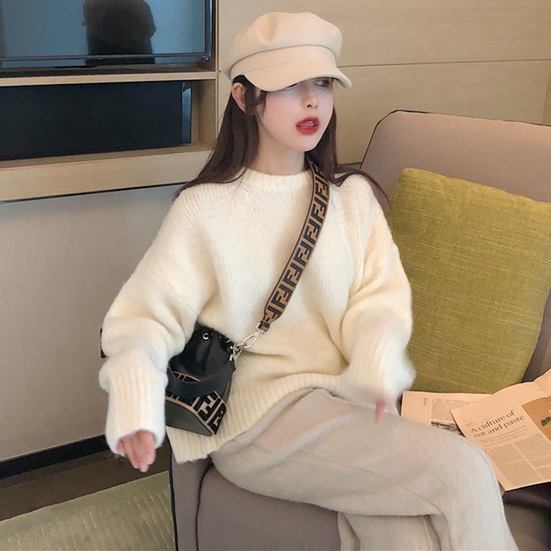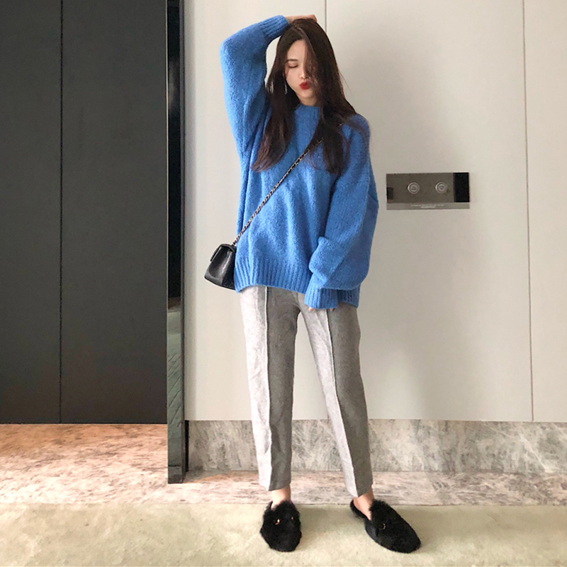 網紅兩件套裝女秋冬2018新款慵懶風套頭毛衣寬松闊腿長褲毛呢褲子