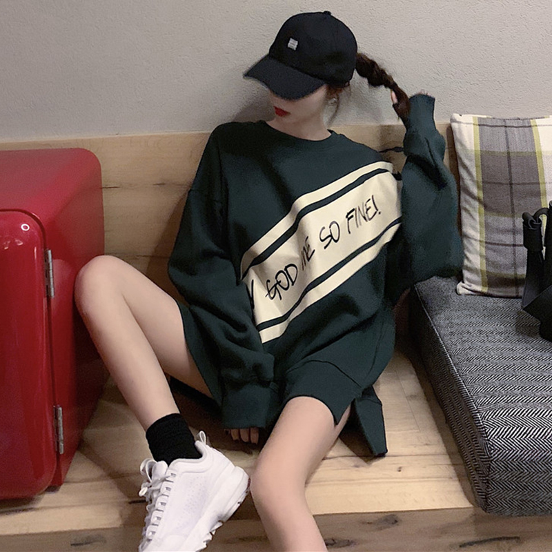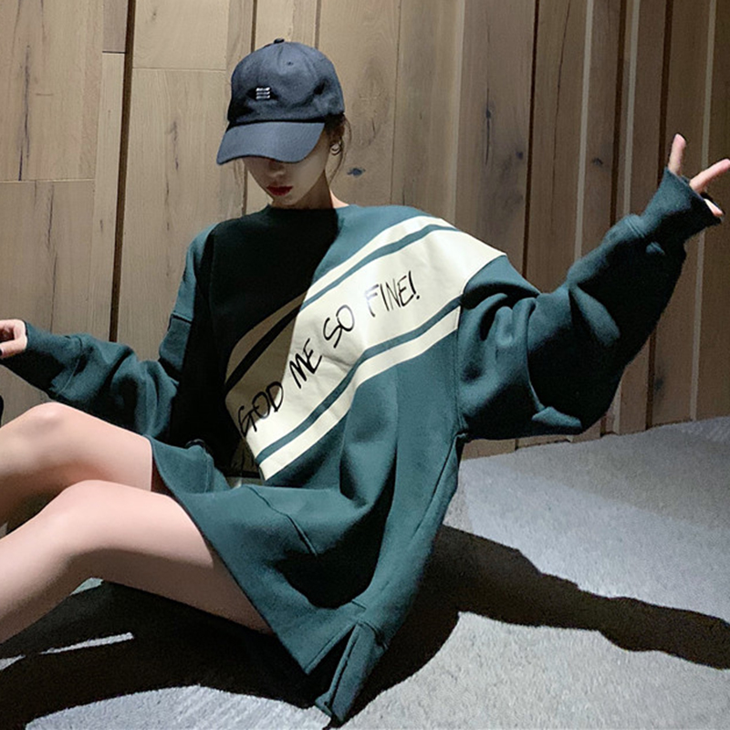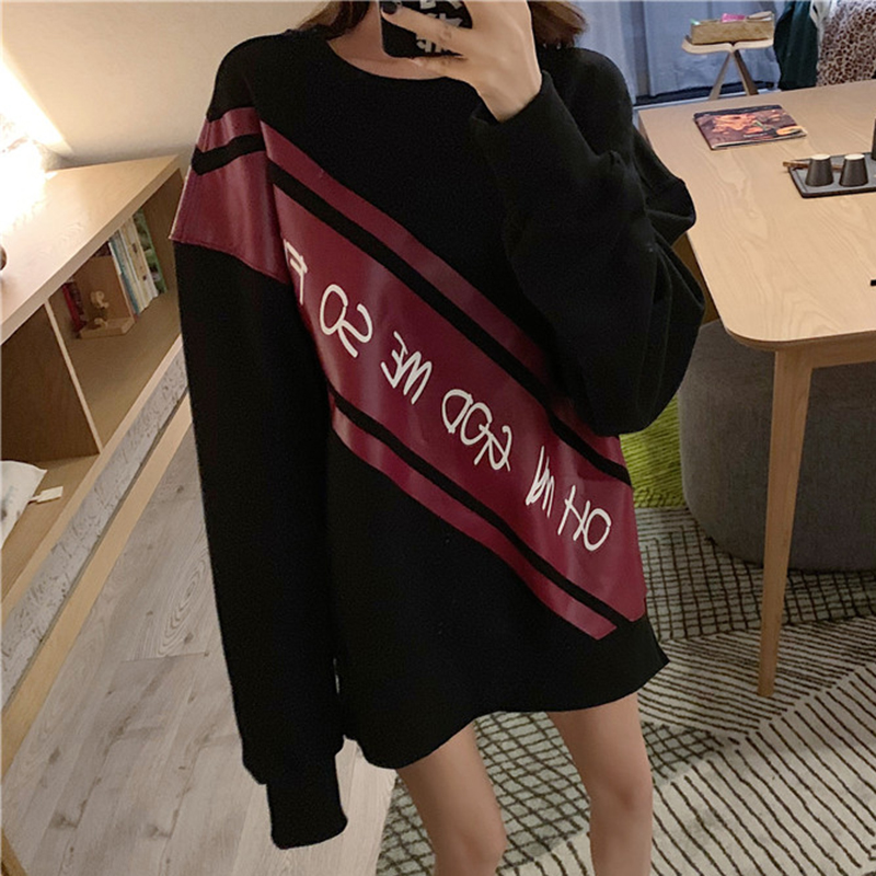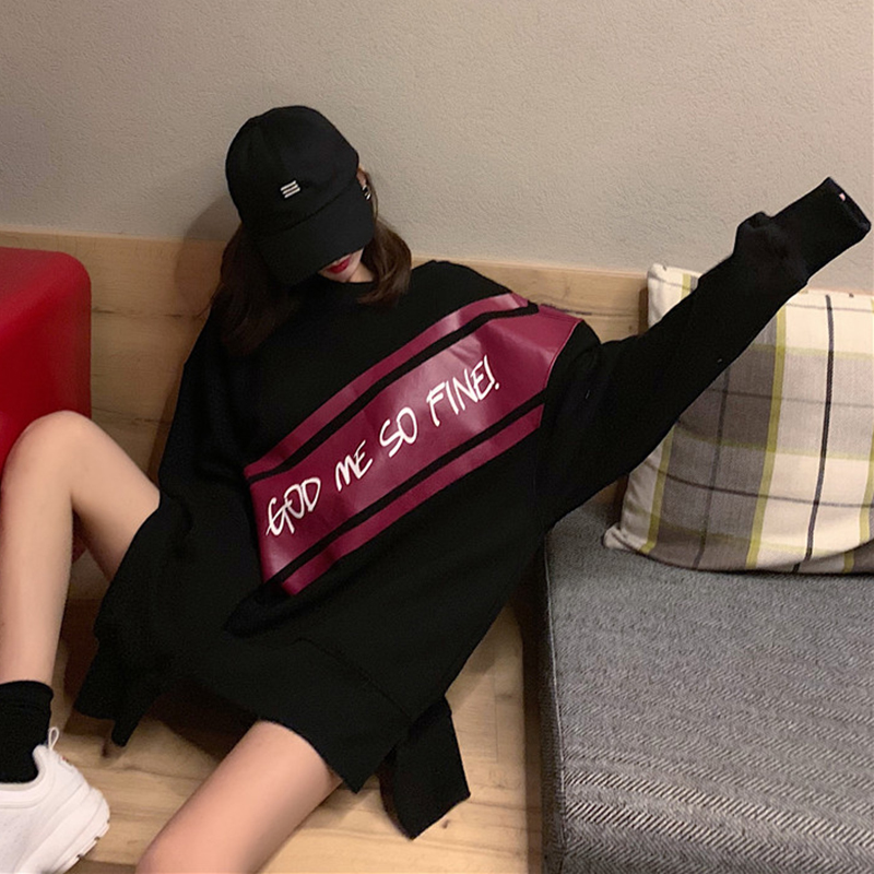 / 寬松拼色字母印花衛衣2018新款女秋冬裝學生加絨外套圓領長袖上衣