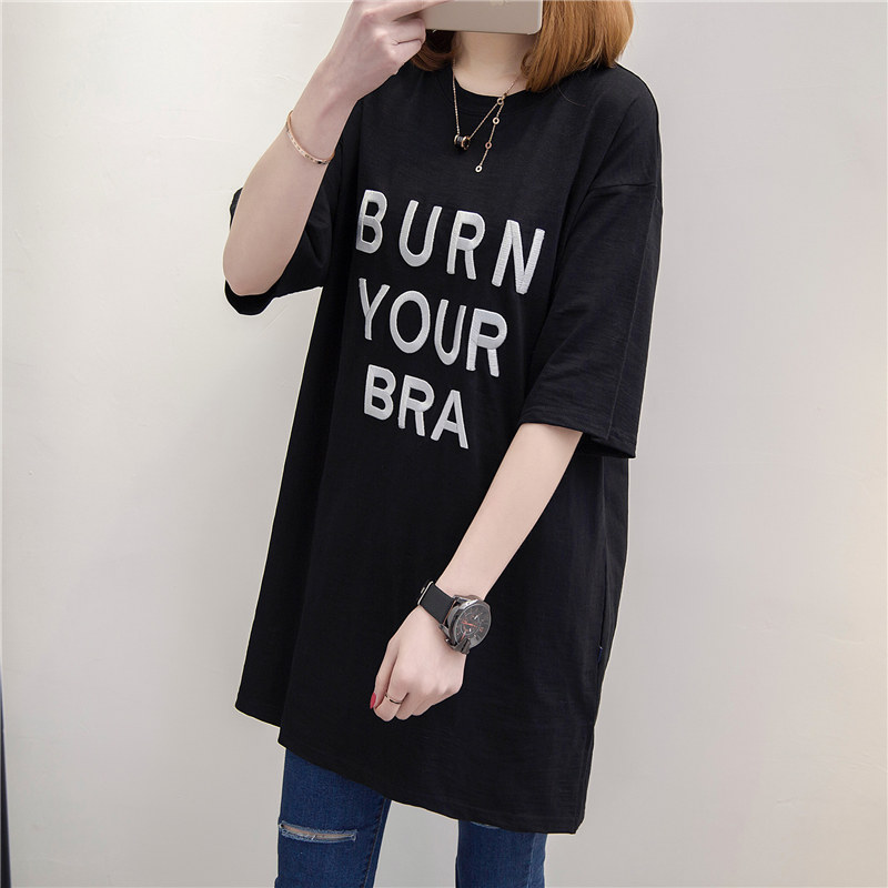 中長款短袖t恤女寬松韓版學生百搭夏季女裝新款白色體恤小衫