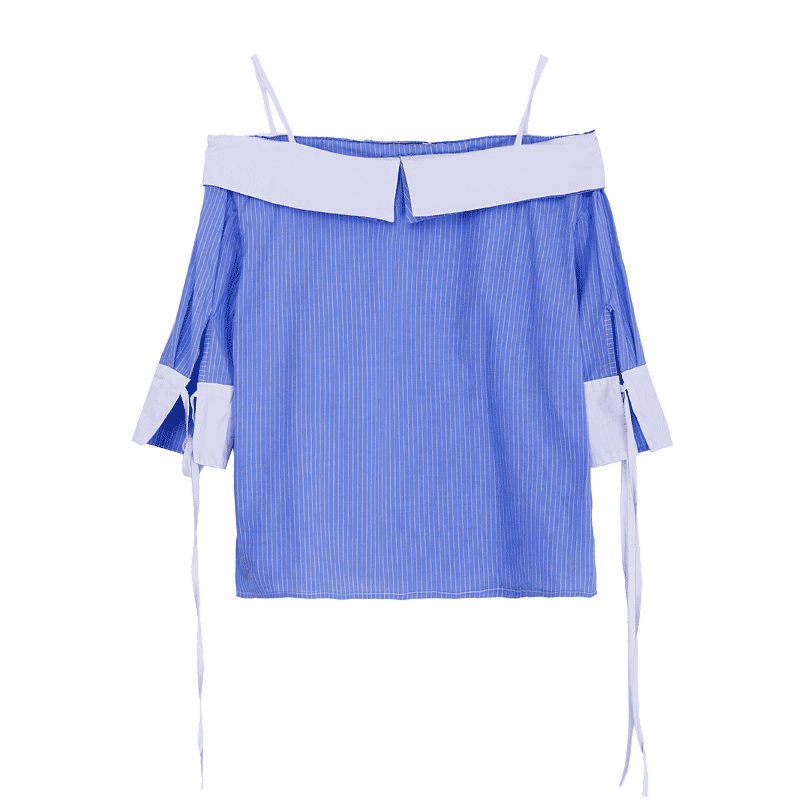 藍白配色的條紋完全就是殿堂級百搭經典單品,整個襯衫是以為主