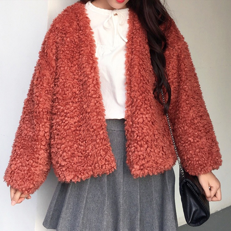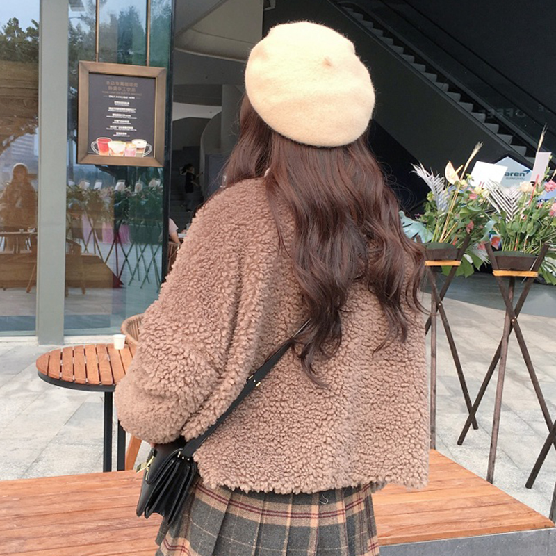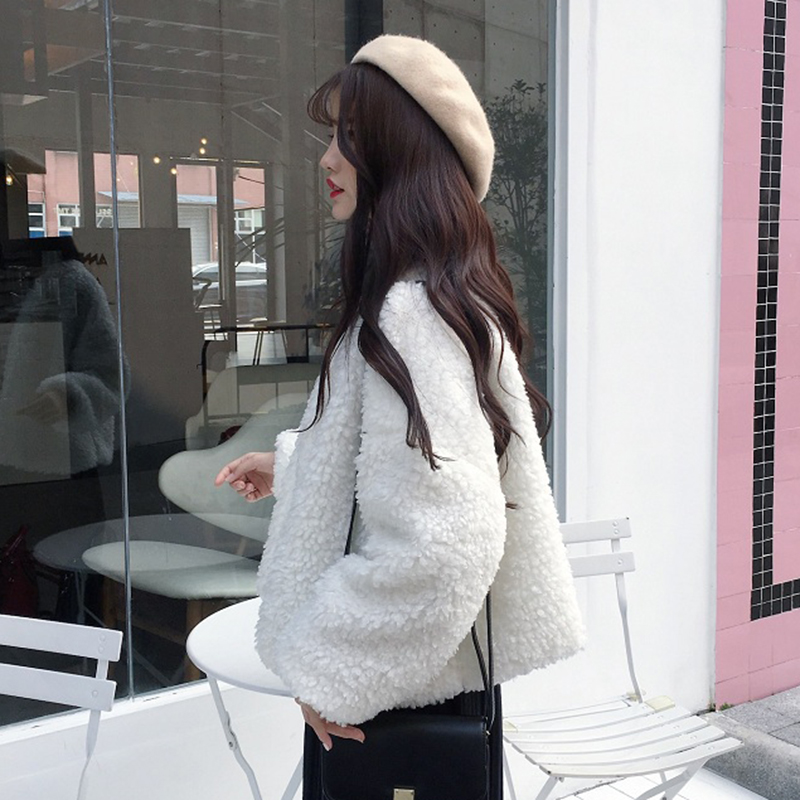 / 秋冬2018新款女裝韓版學生寬松羊羔毛保暖短外套黑色毛毛長袖上衣