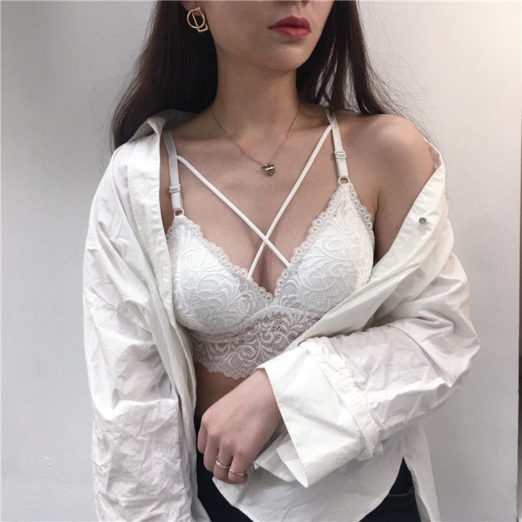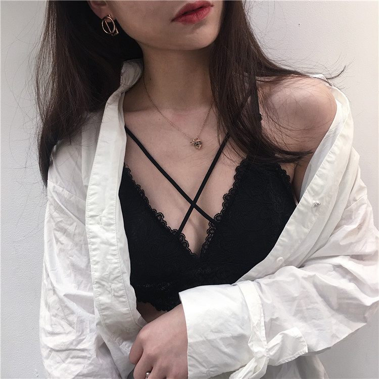 秋季新款復古韓國裹胸抹胸無鋼圈文胸內衣+蕾絲顯瘦打底內褲套裝