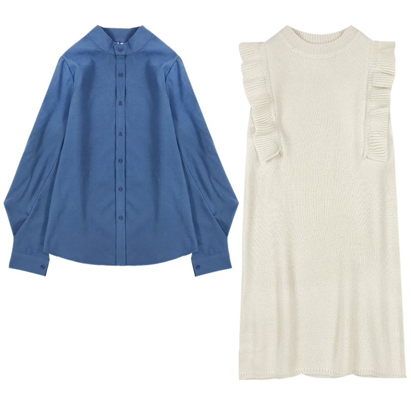 / 時尚套裝女秋冬新款寬松燈籠長袖打底襯衫木耳邊針織背心連衣裙子