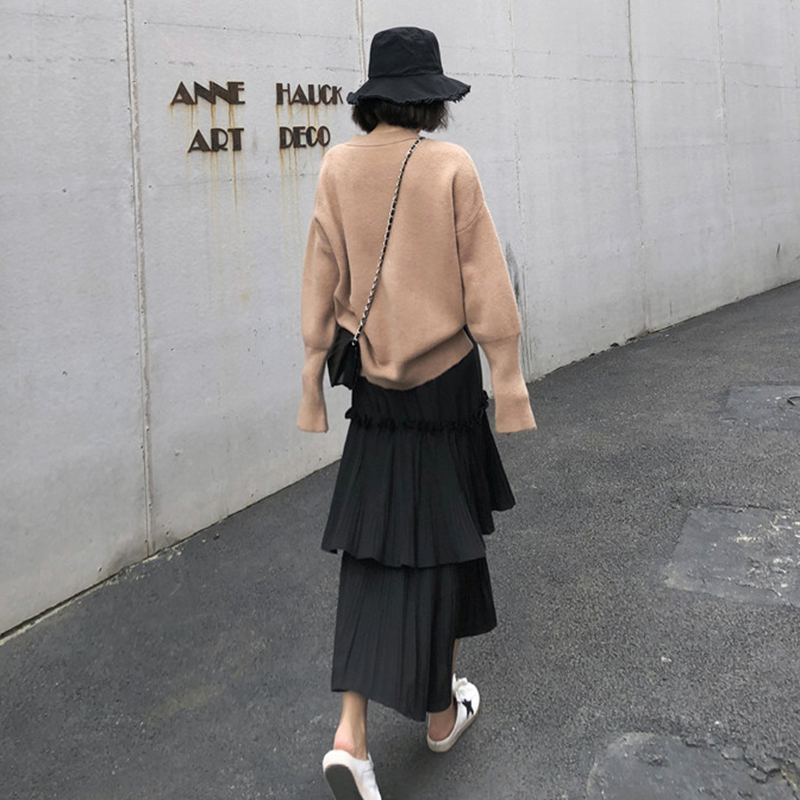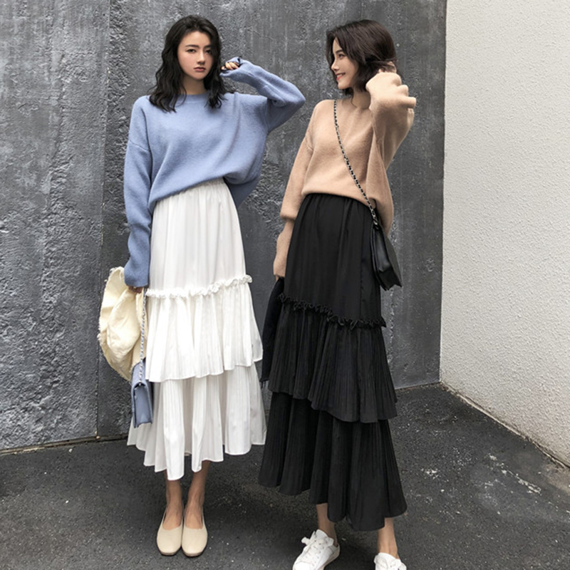 / 仙氣質蛋糕裙秋裝女2018新款顯瘦高腰a字半身裙百搭黑色中長裙子
