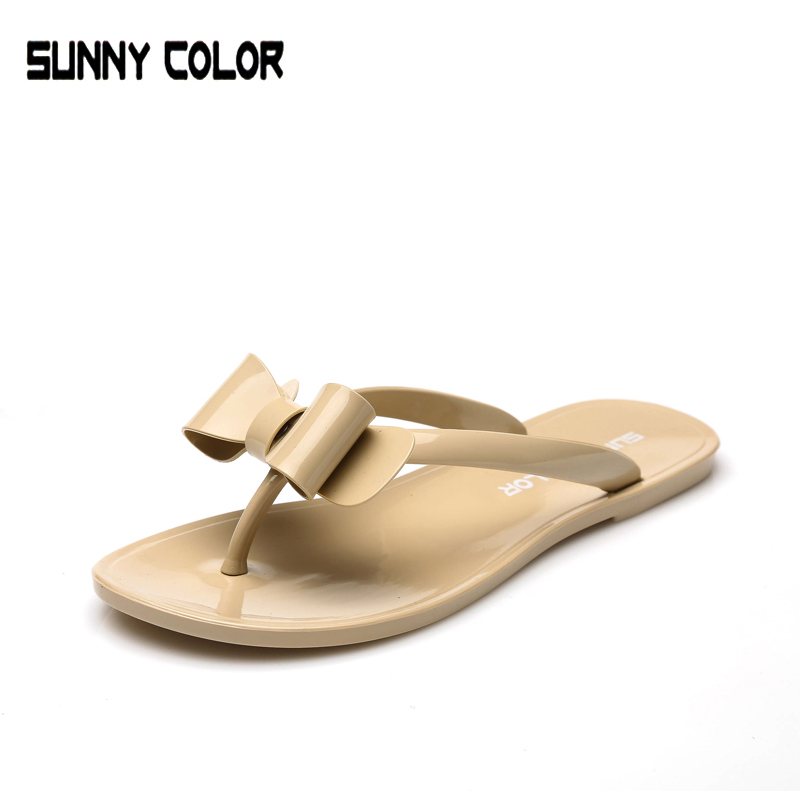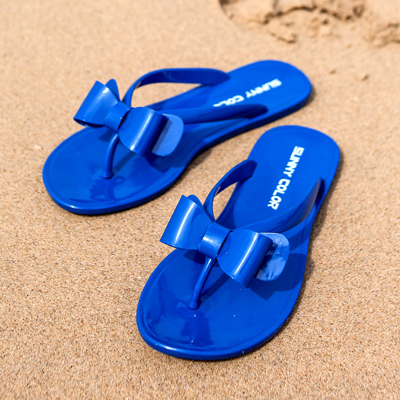 / 夏季夾腳蝴蝶結平跟涼拖鞋女士歐美沙灘鞋純色人字拖