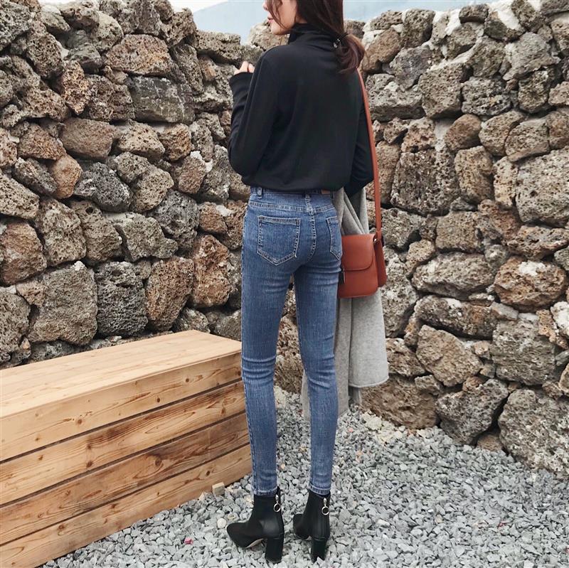 / 秋季褲子韓國高腰顯瘦修身九分褲chic打底鉛筆褲時尚百搭牛仔褲女