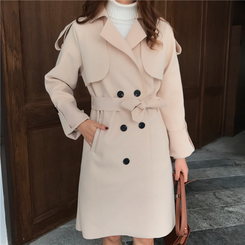 呢子毛呢大衣新款女冬2018寬松顯瘦中長款雙排扣風衣學生流行外套