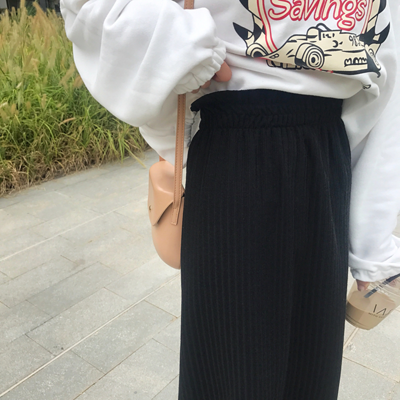 后開叉針織a字半身裙女秋裝新款氣質修身顯瘦花苞高腰一步包臀裙