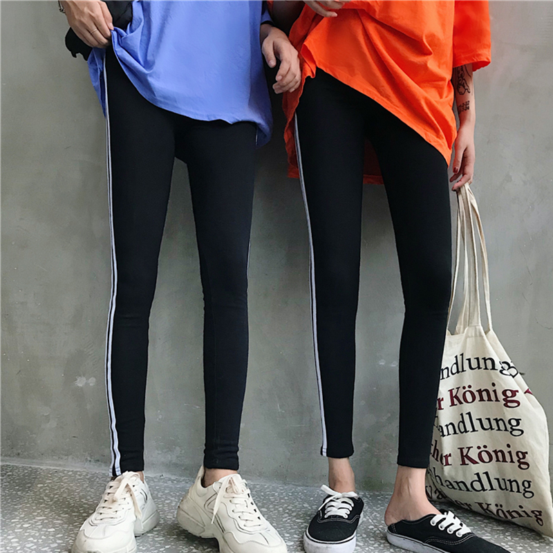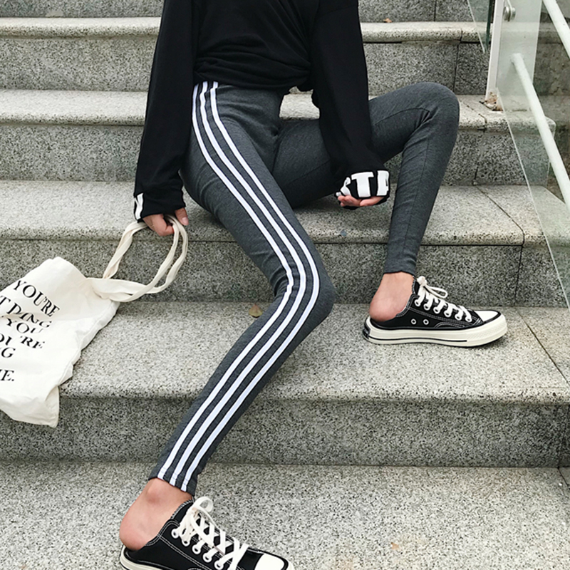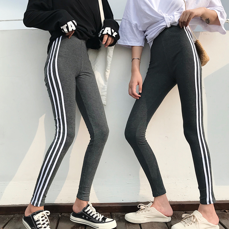 休閑運動褲女秋裝2018新款韓版學生高腰打底緊身小腳褲九分鉛筆褲