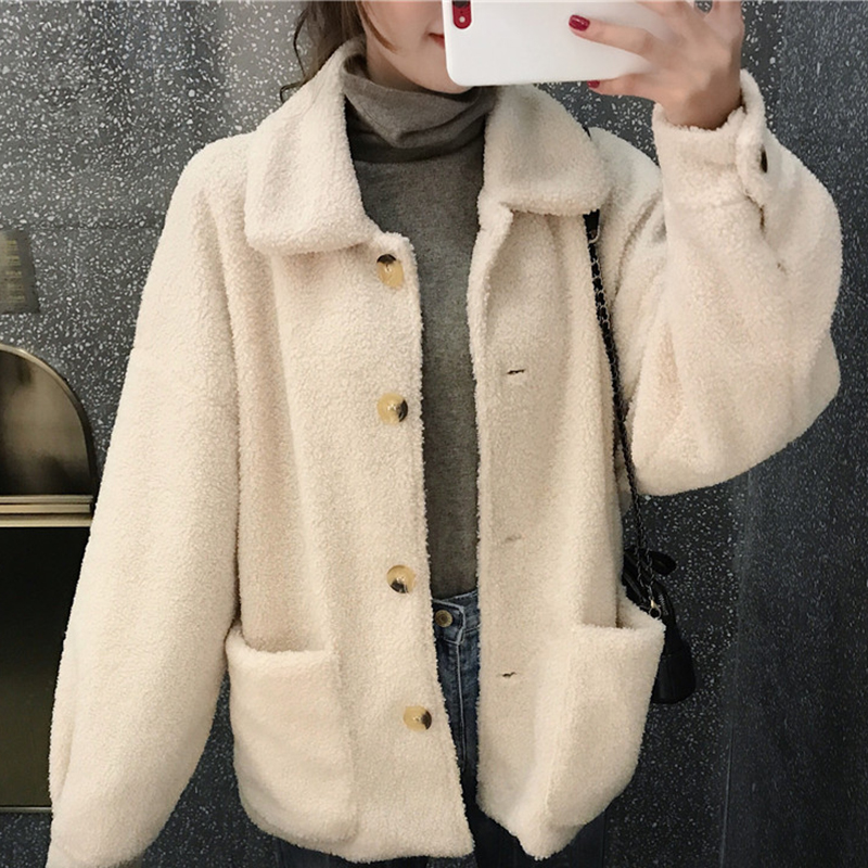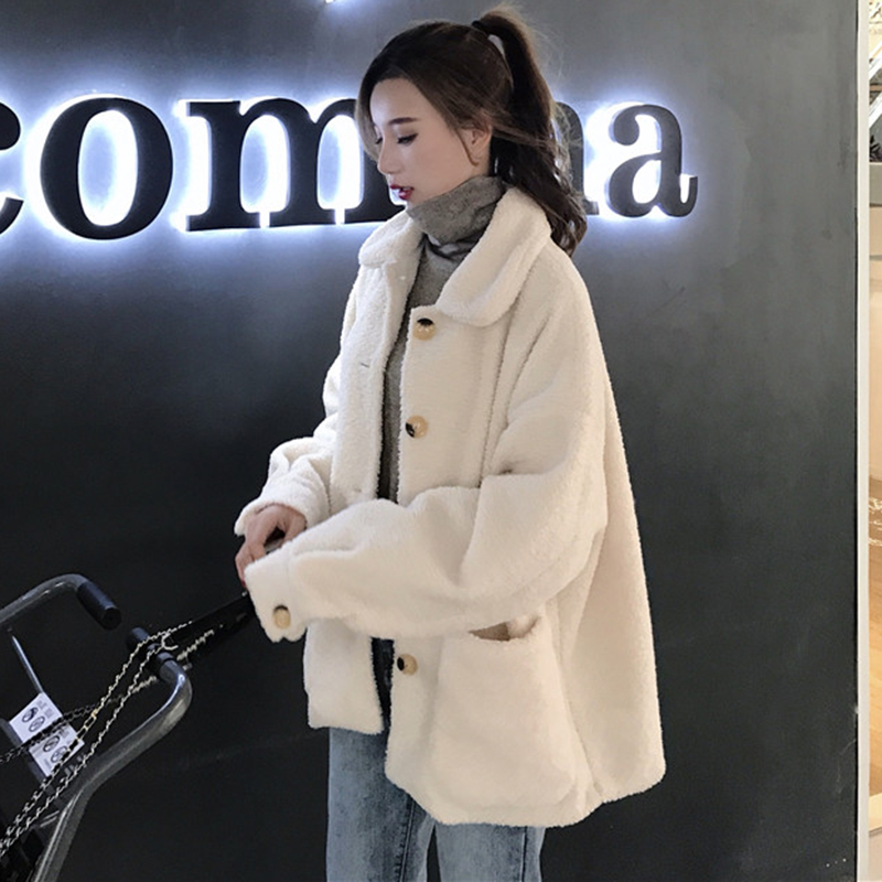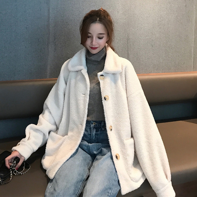 / 小個子流行大衣女秋冬裝2018新款韓版chic學生寬松長袖羊羔毛外套