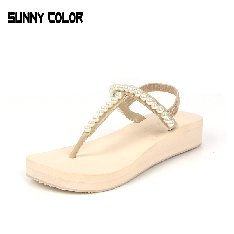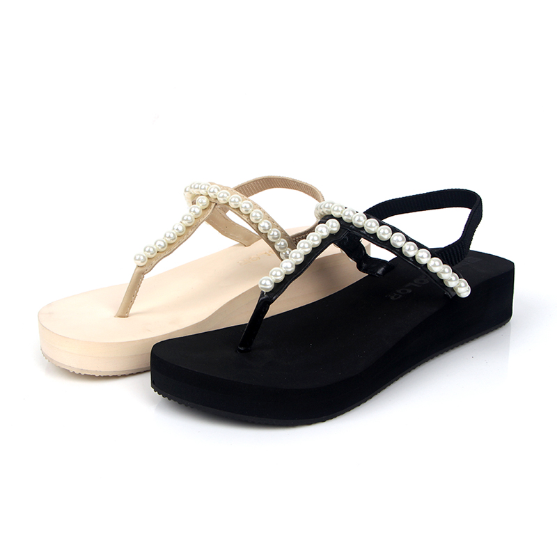 夏季休閑韓版人字拖 厚底松糕坡跟沙灘鞋 女士涼拖鞋