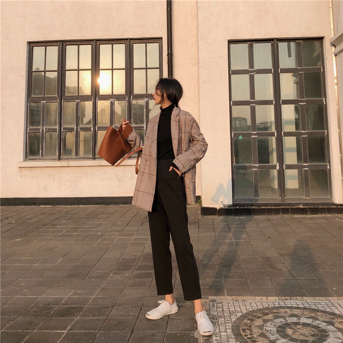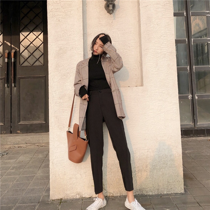 / 褲子女2018新款韓范學生復古chic顯瘦高腰九分褲小腳休閑哈倫褲潮