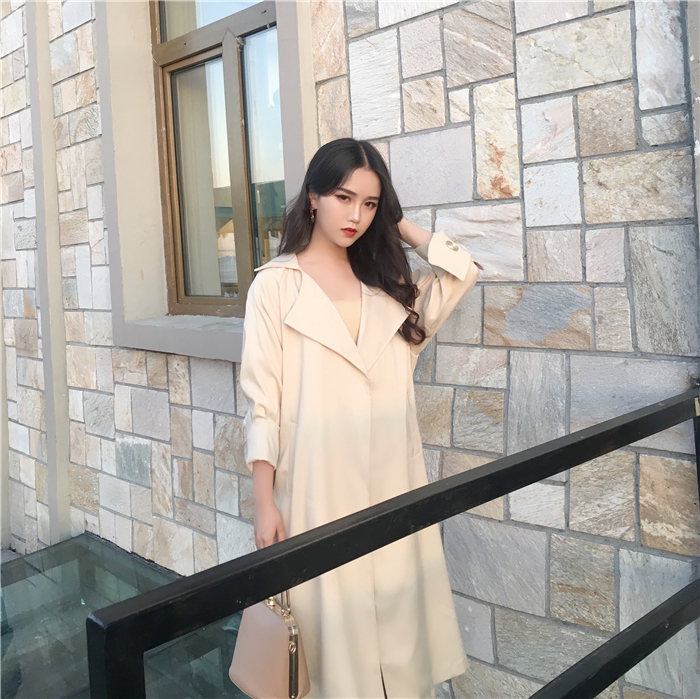 風衣女中長款韓版秋季2018新款純色系腰寬松復古外套(有里布)潮
