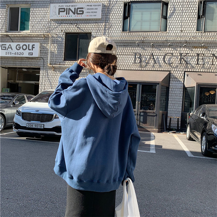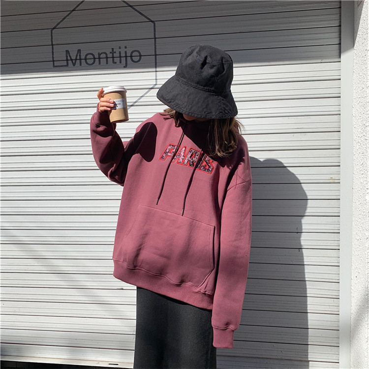 chic上衣慵懶風寬松衛衣女秋冬2018新款百搭豹紋字母繡花連帽上衣