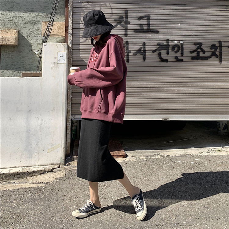 女神套裝秋冬新款寬松長袖連帽字母加絨衛衣+高腰開叉豹紋半身裙