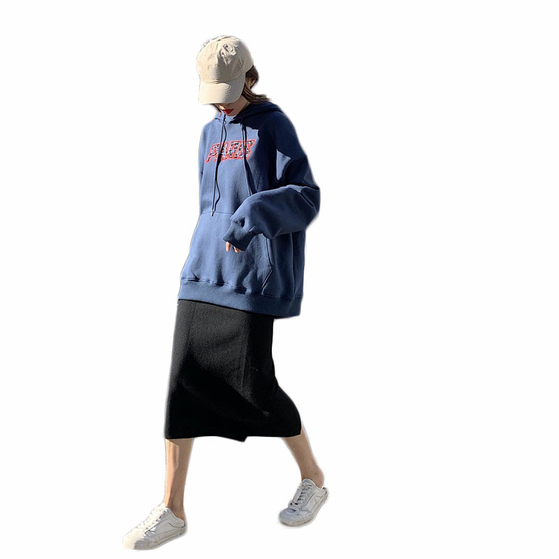 衛衣2018新款女長袖韓版寬松顯瘦oversize印花半高領慵懶長款裙子