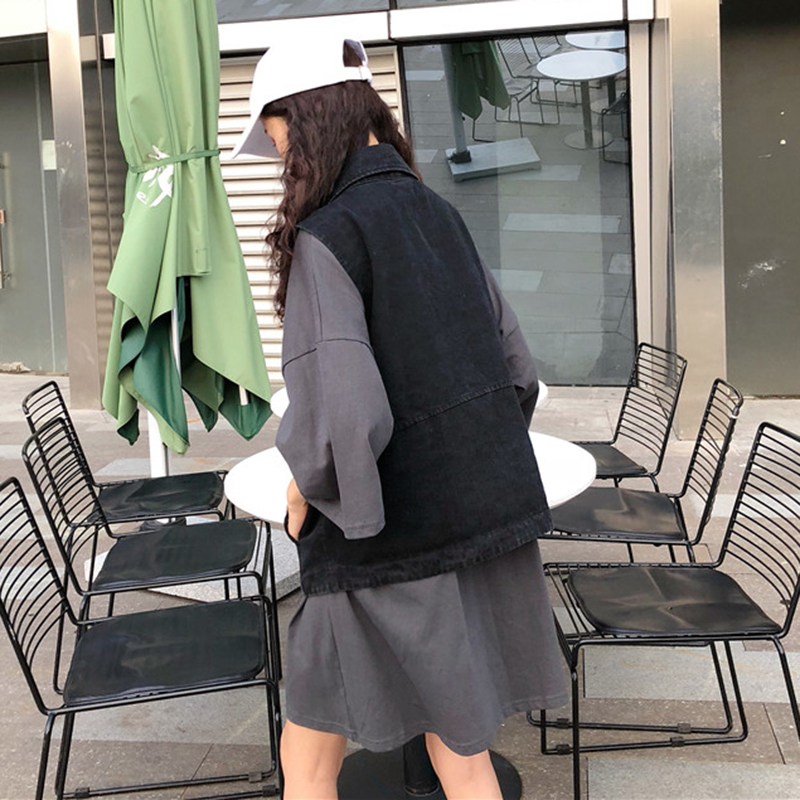 / 兩件套裝秋季2018新款韓版寬松上衣+無袖牛仔馬甲時尚學生套裝女